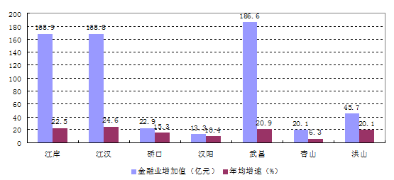“十二五”期间,蜜桃视频 金融业总体规模、注册户数、注册资本金等均位居全市前三甲,金融服务体系日趋完善,金融业整体实力显著增强。2014年,全区金融业完成增加值168.86亿元,排名中心城区第二位,仅次于武昌区的186.62亿元,占全市金融业的比重为24.14%;2010年以来年均增长22.48%,增速仅次于江汉区的24.64%,高于全市平均增速3.8个百分点。金融业增加值占地区生产总值的比重为22.1%,2010年以来呈稳步上升态势;占现代服务业的比重为46.24%,主导产业地位稳固。2015年1-9月全区完成金融业增加值139.45亿元,占地区生产总值的比重为23.02%,占现代服务业比重为42.17%。