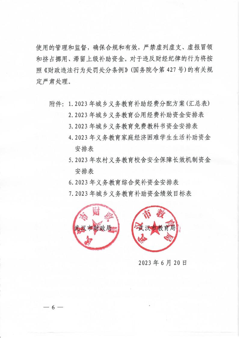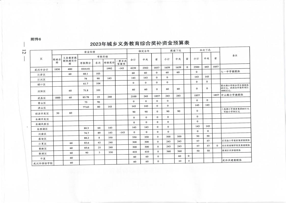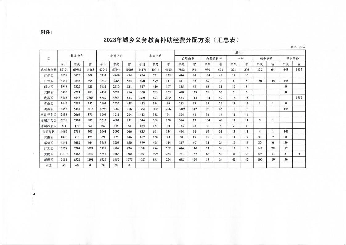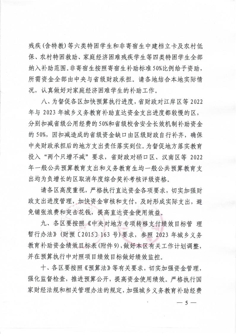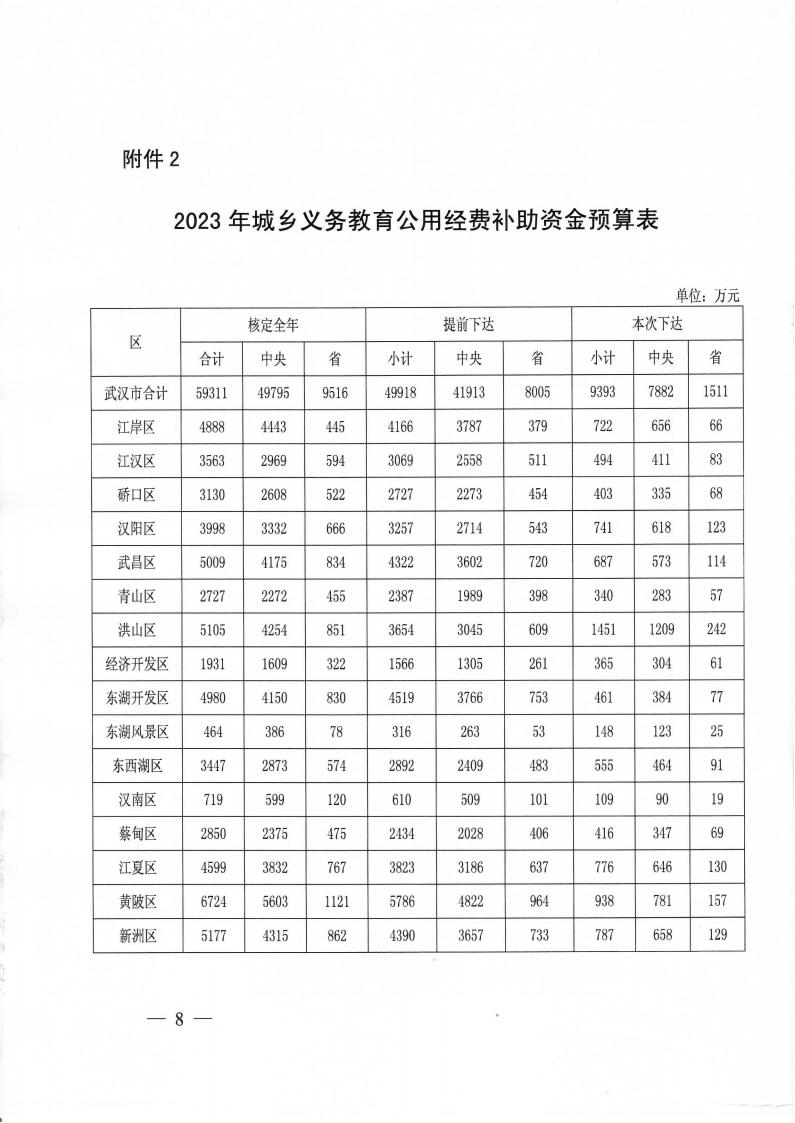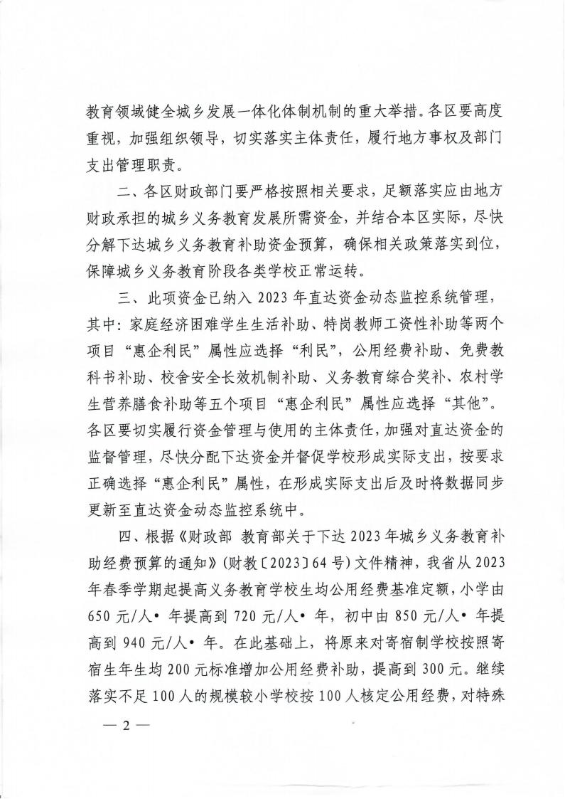 市财政局 市教育局关于下达2023年城乡义务教育补助经费预算的通知