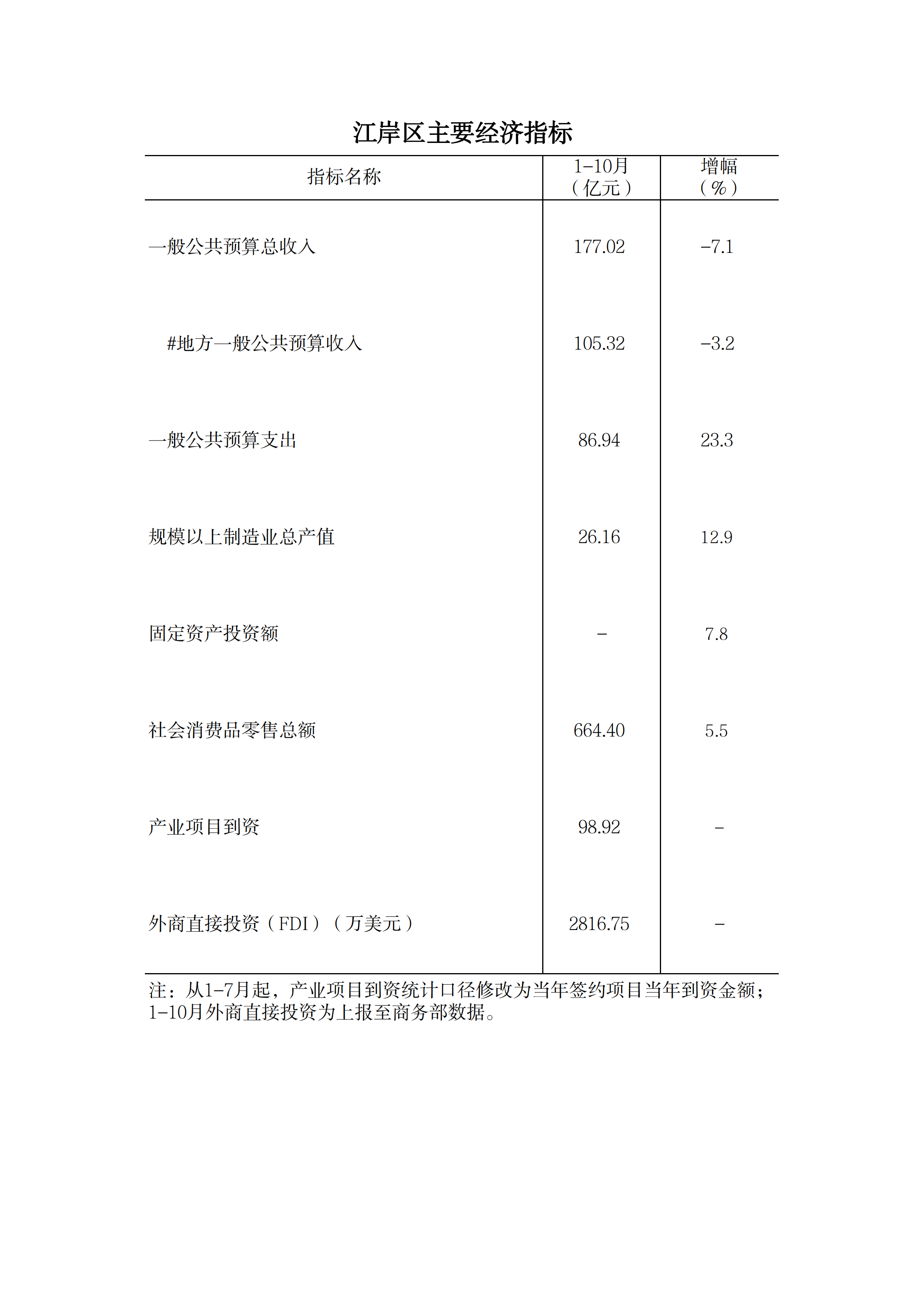 2025年1-10月江岸地区主要经济指标